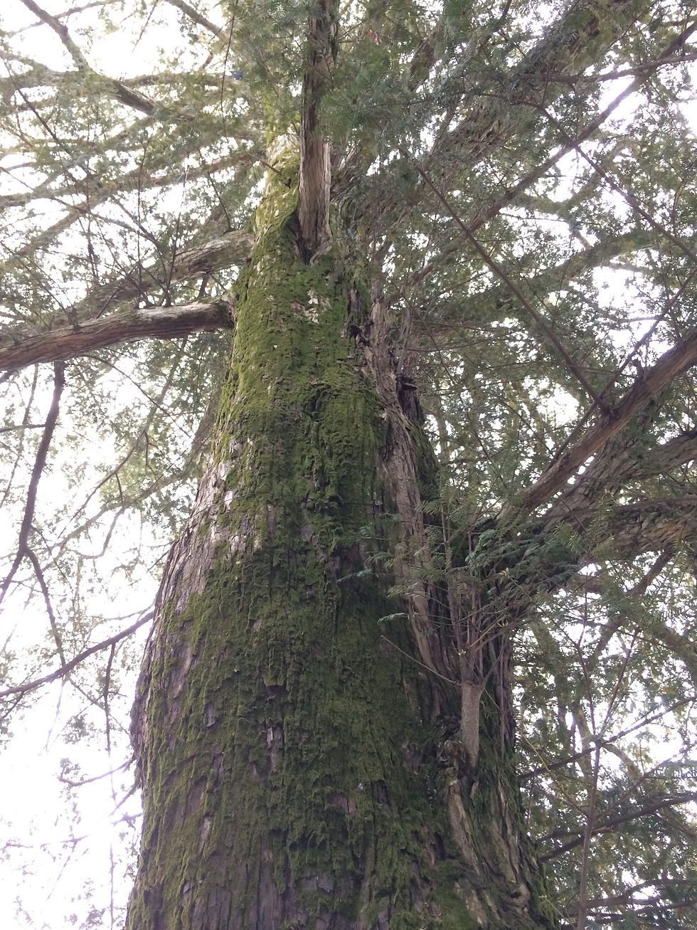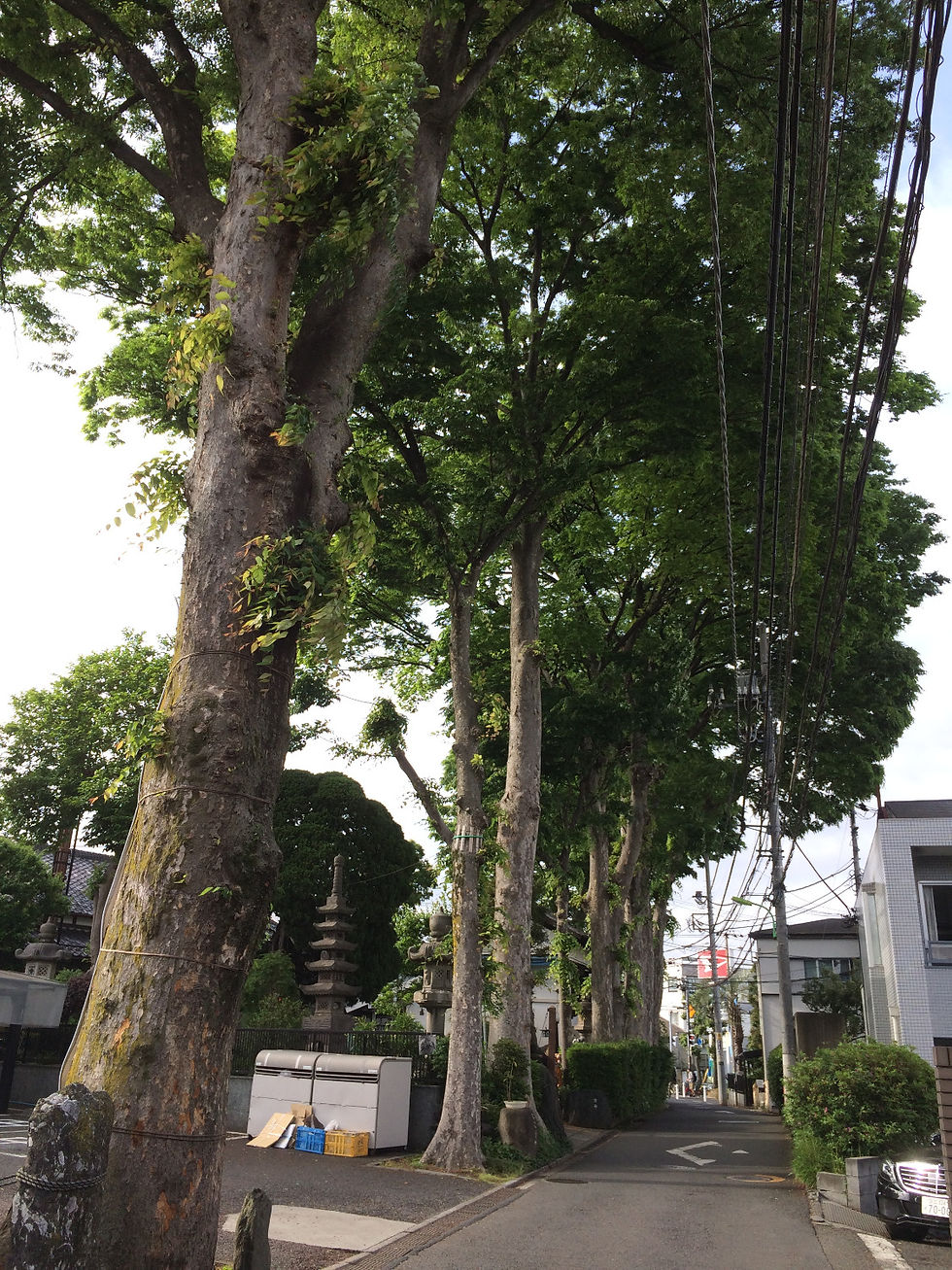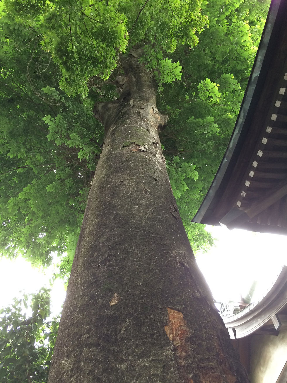 本堂の右手の細い通路沿いにあったケヤキの大木。
